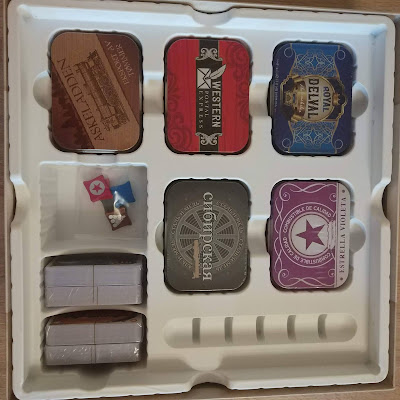 Na ostatnim poziomie mamy pudełka z wagonikami, karty i znaczniki punktacji: